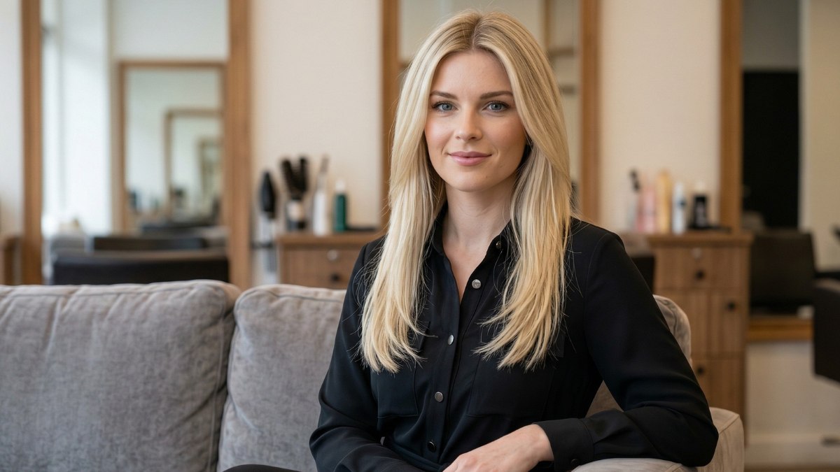 La nuance est un blond naturel - ni trop clair, ni trop froid - travaillé avec des tons plus clairs et des ombres subtiles pour éviter tout aspect uniforme ou artificiel. C’est un blond qui respire l’authenticité. Le résultat est un look à la fois serein et sophistiqué, même si sa perfection cache un véritable savoir-faire technique.