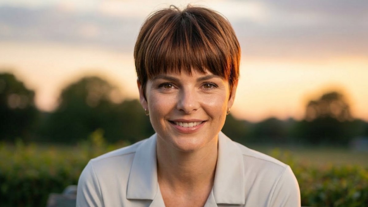 La base brune est ici réveillée par des mèches caramel qui captent la lumière dorée du crépuscule, apportant une profondeur et un relief immédiats. La magie réside dans cette évolution chromatique constante : ce qui semble être une simple coupe courte devient une matière vivante, vibrante et lumineuse au moindre mouvement.