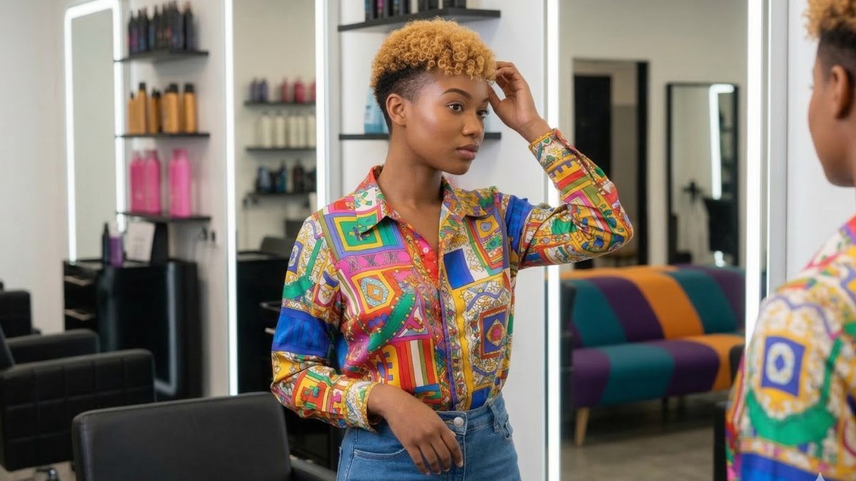 Entretenir cette coiffure consiste avant tout à travailler avec la boucle, et non contre elle. Une bonne crème ou un gel hydratant pour boucles, appliqué sur cheveux humides puis laissé sécher à l’air libre ou au diffuseur, permettra de garder la coiffure nette et sans frisottis. Des coupes régulières maintiennent la forme parfaite et les zones coupées à la tondeuse bien nettes.