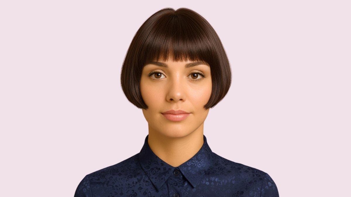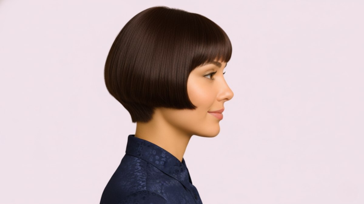 La précision exigée est remarquable : chaque mèche a sa place, créant un ordre et une sophistication incomparables. Le carré tombe naturellement en un rideau parfait, tandis que la frange, soigneusement taillée, repose sur le front sans lourdeur.