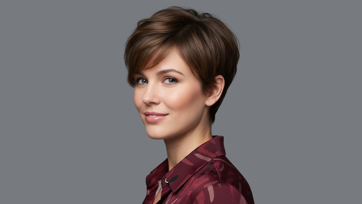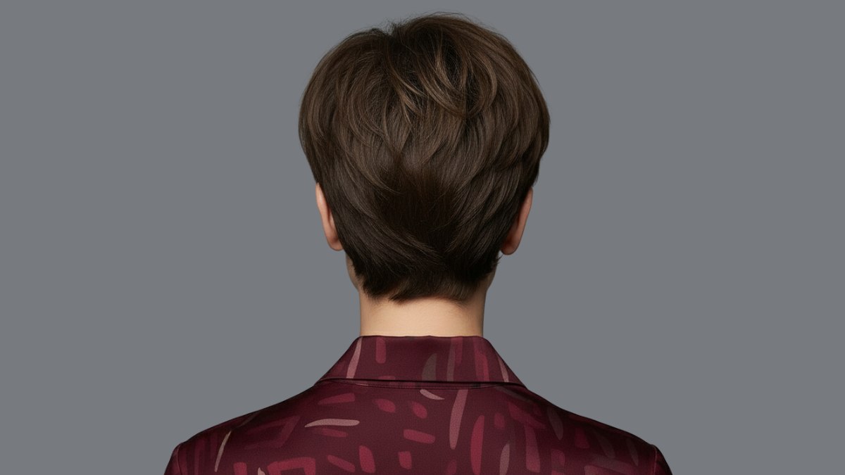 Cette coupe à la garçonne met en valeur toute la richesse des tons bruns dans une coiffure courte et dégradée. La coupe présente des mèches plus longues sur le dessus, que vous pouvez balayer sur le côté afin de créer du volume et du mouvement tout en conservant une allure soignée. Les côtés sont finement effilés, et l’arrière dévoile un joli dégradé qui suit naturellement la forme de la tête.