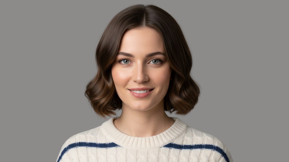 Le coiffage est chic, avec des vagues à l’allure naturellement décoiffée tout en étant parfaitement maîtrisées. Les pointes ont été légèrement courbées vers l’extérieur, ce qui ajoute une touche de mouvement ludique et évite que la coiffure paraisse trop lourde ou trop stricte. Cette coupe peut se porter avec ces ondulations romantiques pour un rendu plus doux, ou lissée pour une esthétique plus géométrique.
