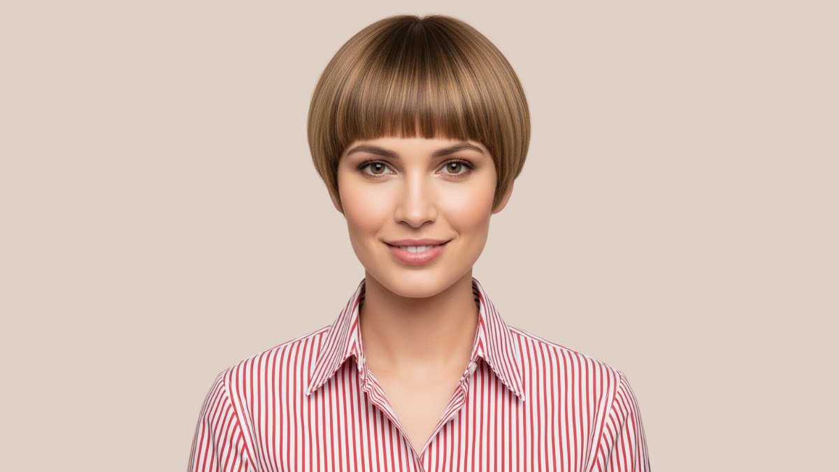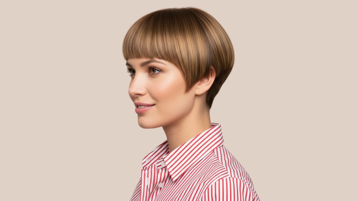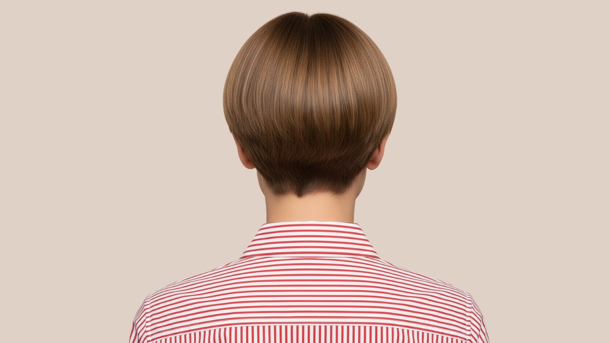 Cette coiffure courte est une réinterprétation de la coupe au bol classique, réalisée avec précision et une touche résolument contemporaine. La coupe présente une silhouette arrondie qui suit la courbe naturelle de la tête, avec des cheveux qui se placent juste au-dessus des oreilles et se raccourcissent progressivement vers la nuque.