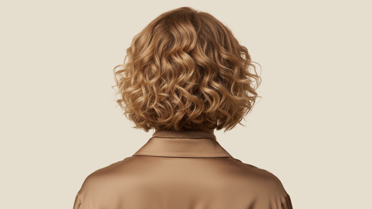 Ce carré bouclé incarne une élégance raffinée grâce à des proportions équilibrées et une palette de couleurs sophistiquée. La coupe arrive au niveau du col, créant une silhouette flatteuse qui allonge le cou tout en conservant suffisamment de longueur pour mettre en valeur des boucles bien définies.