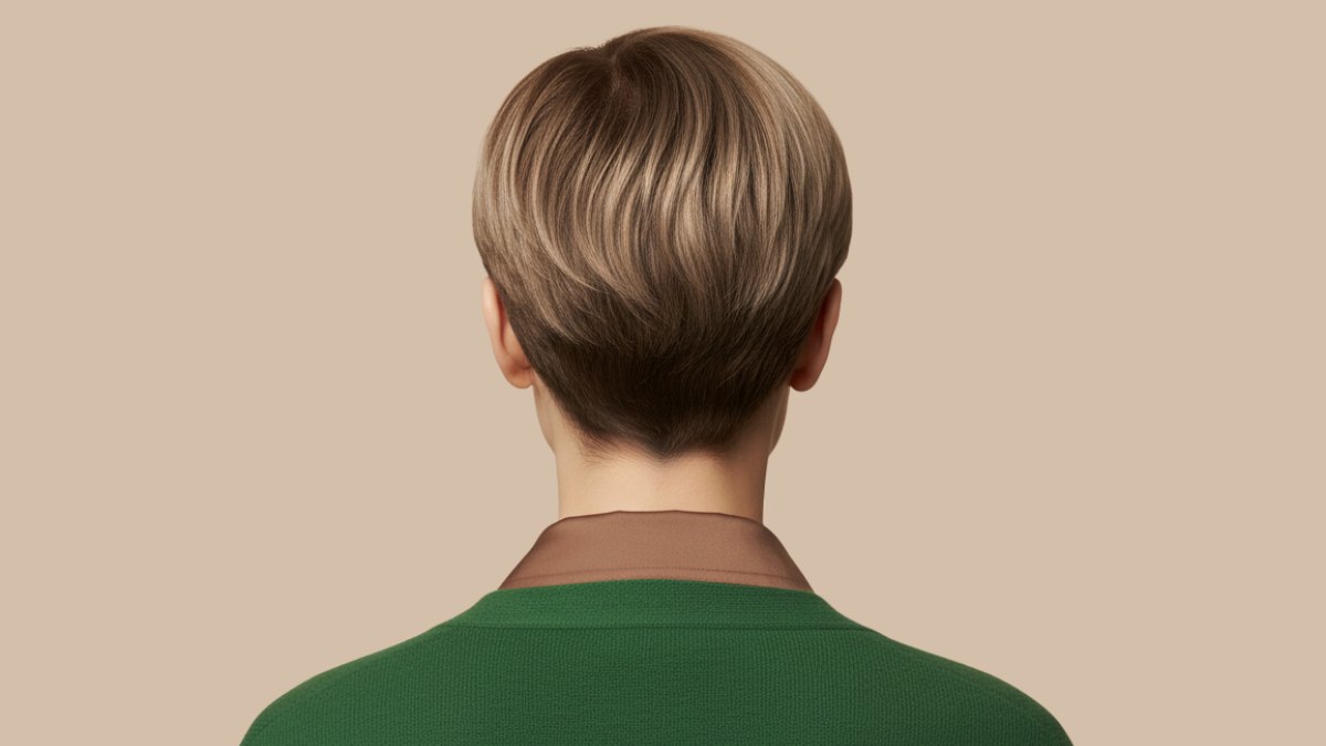 La couleur associe une base châtain cendré à des mèches blond froid, créant profondeur et relief. Ces nuances plus claires captent la lumière et mettent en valeur la forme et le mouvement de la chevelure.