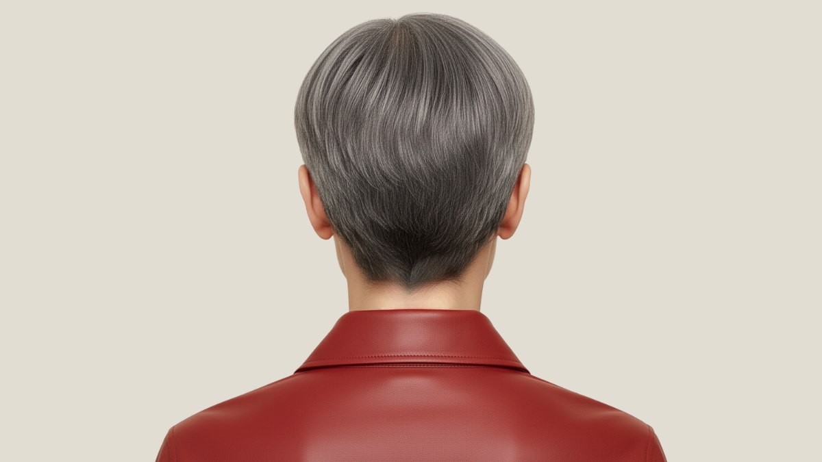 La couleur est un gris neutre, réchauffé par de subtiles nuances qui empêchent l’ensemble d’apparaître trop froid ou cendré. La teinte est uniforme mais laisse entrevoir de légères variations qui lui donnent de la profondeur et évitent un résultat plat. Elle possède une douceur presque veloutée qui s’accorde parfaitement avec le coiffage lisse.