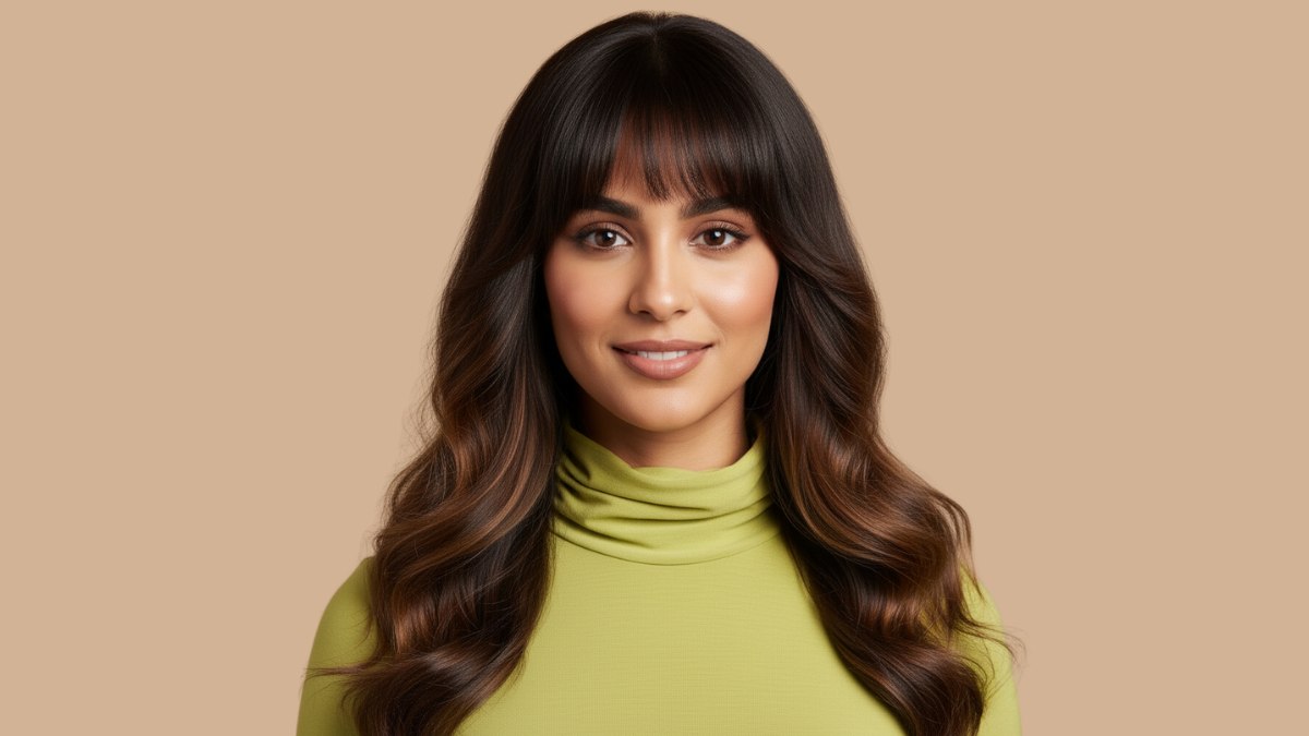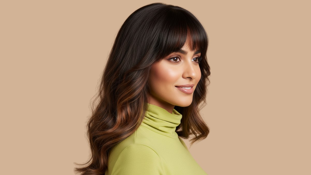 Le col roulé chartreuse est un choix parfait qui apporte une touche moderne à cette coiffure féminine et classique. Sa couleur vive et fraîche crée un contraste saisissant avec les tons bruns chauds, mettant en valeur chaque nuance. Son col montant sert d’écrin idéal, laissant les cheveux devenir la pièce maîtresse, tandis que la teinte audacieuse suggère une sensibilité très mode.
