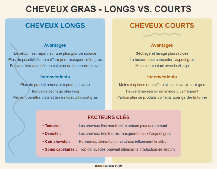 Réponse : La relation entre la longueur des cheveux et leur tendance à devenir gras est plus subtile qu’il n’y paraît. Vos deux points de vue ont leur logique, mais la gestion des cheveux gras dépend de plusieurs facteurs, bien au-delà de la simple longueur.