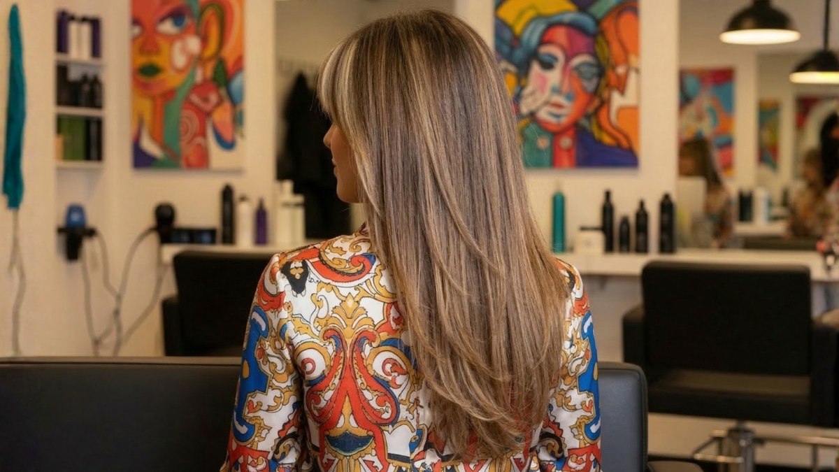 Si vous avez toujours rêvé de cheveux qui semblent illuminés de l’intérieur, ce style est exactement ce qu’il vous faut. Cette coiffure longue transforme une base naturellement brun foncé grâce à une technique de mèches multi-tonales qui crée profondeur et dimension. Le résultat est une chevelure qui scintille, évolue et bouge. Plus foncée aux racines, lumineuse vers les pointes, avec toute une palette de nuances entre les deux.