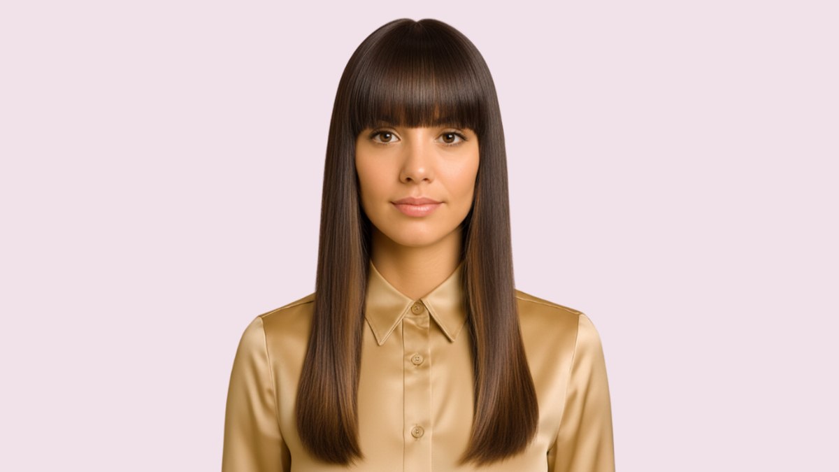 Parlons d’affirmer votre style ! La frange droite associée à une longue chevelure lisse déclare : "Je suis là, et je suis fabuleuse." Ce n’est pas qu’une coiffure ; c’est un boost de confiance qui transforme instantanément votre look grâce à une ligne audacieuse juste au-dessus des sourcils.