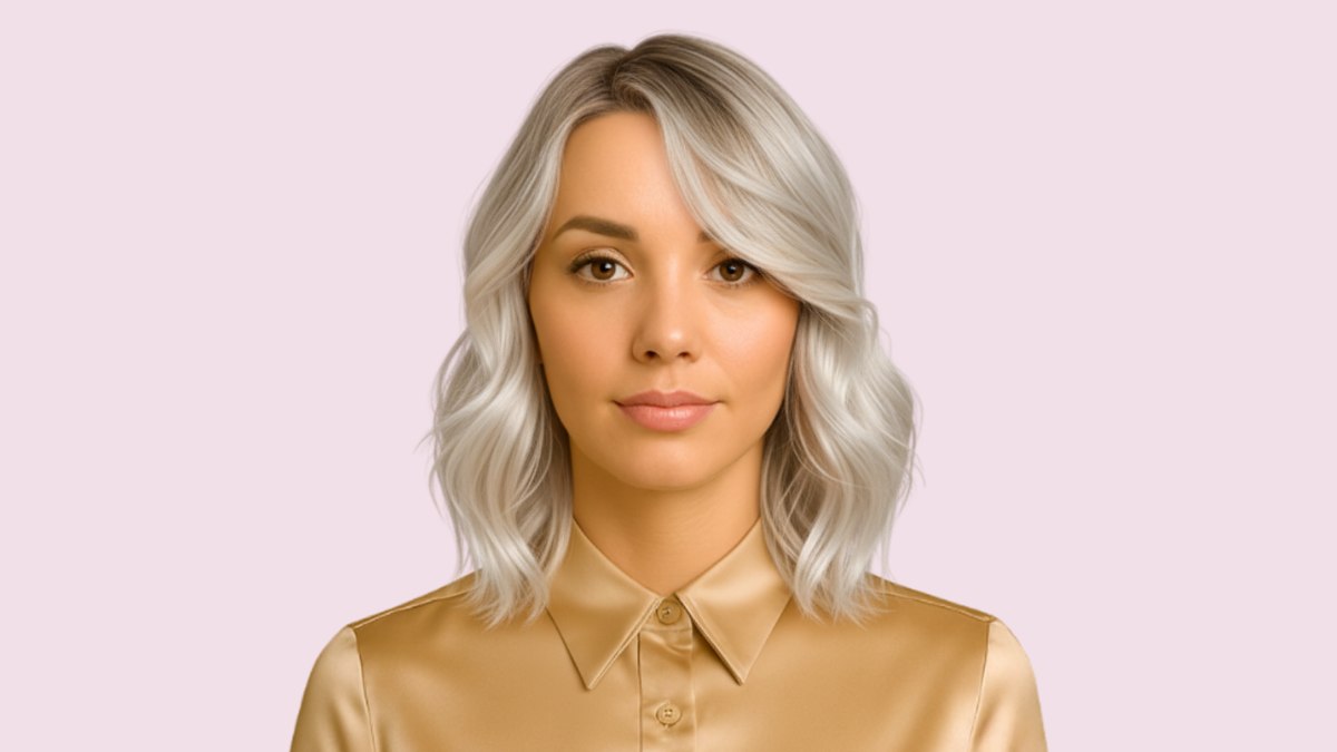 Quant à la couleur, c’est un blond travaillé avec art. Des racines légèrement plus sombres s’éclaircissent en miel et platine, pour un effet « retour de vacances » lumineux et profond qui capte la lumière sous tous les angles.