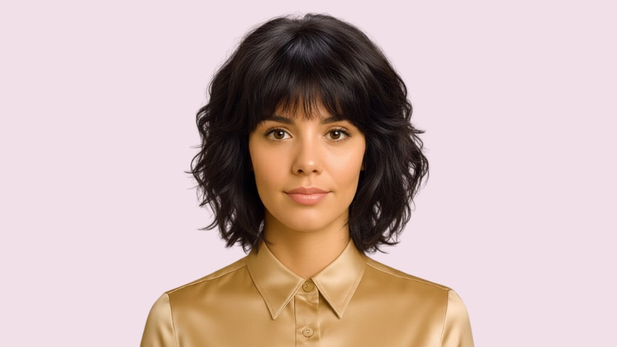 Et parlons de cette frange : elle a du caractère, avec de légères variations de longueur qui créent une douceur naturelle. Parfaite pour dissimuler un front que vous jugez trop présent tout en mettant vos yeux en valeur.