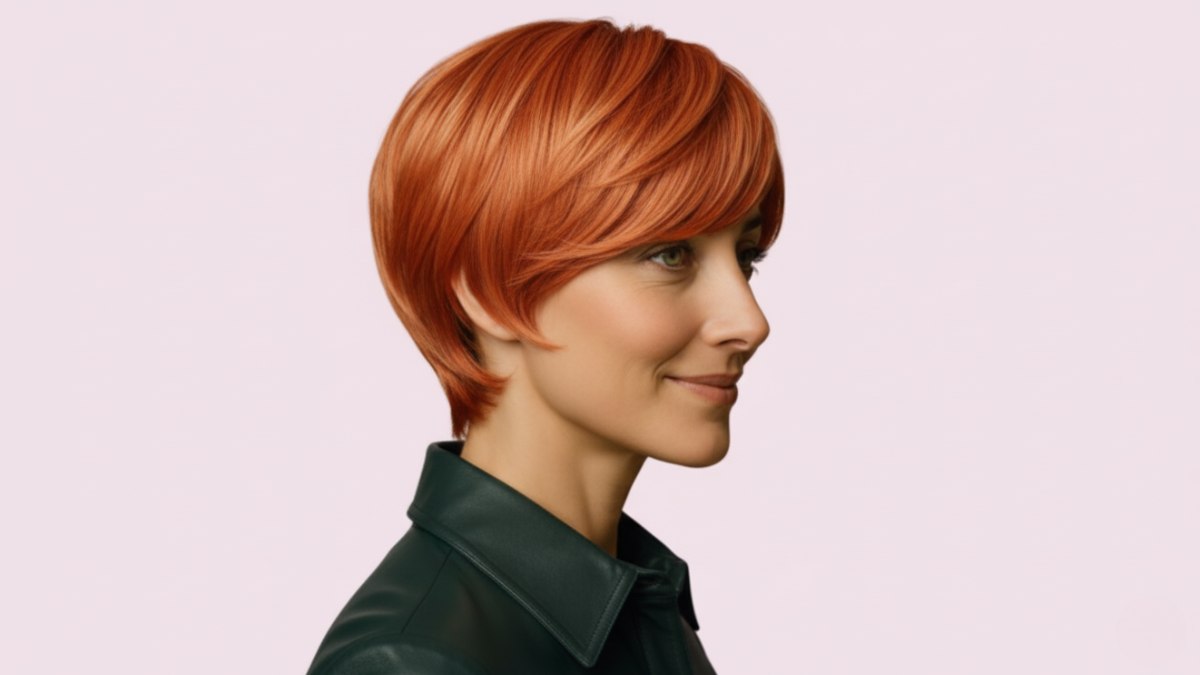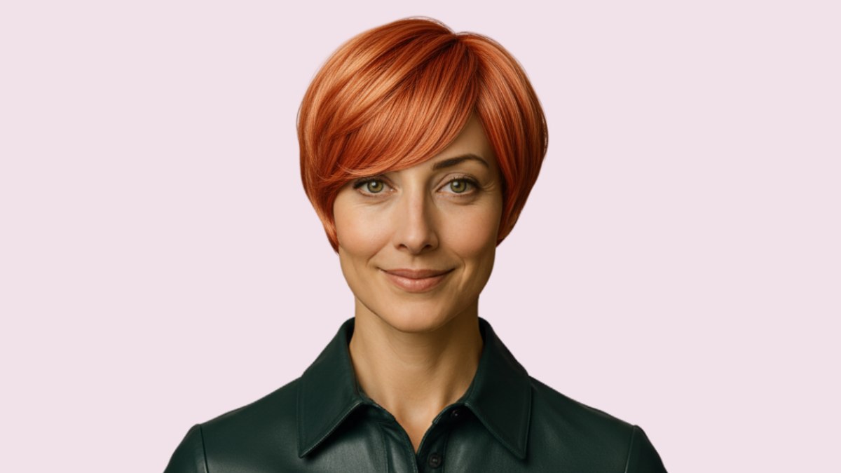 Cette coupe courte audacieuse, entre bob et pixie, ornée d’une frange impeccable, marie le charme rétro à une modernité éclatante. C’est le genre de coiffure qui donne envie d’enfiler un rouge à lèvres vif et de conquérir le monde avec style.