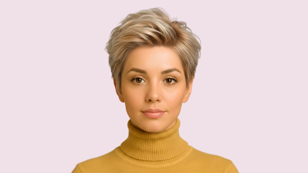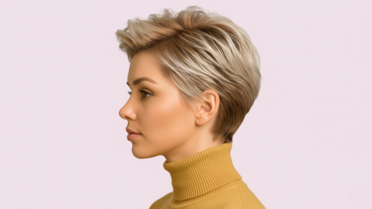 Voilà une coiffure qui fait sensation ! Cette version audacieuse du quiff classique est destinée à la femme qui n’a pas peur de se démarquer. Courtes sur les côtés, les mèches contrastent avec un sommet volumineux, pour un look à la fois puissant et féminin.