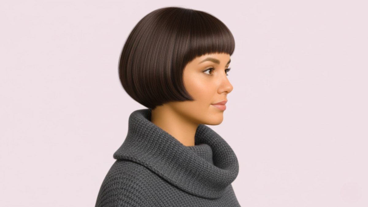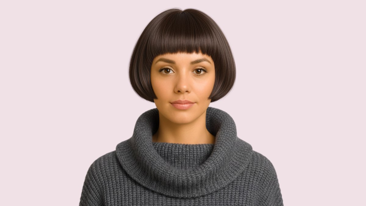 La beauté de ce carré réside dans sa précision. Chaque ligne est parfaitement placée. La longueur arrive juste aux pommettes, ce qui met magnifiquement en valeur la structure osseuse et crée une silhouette nette. La frange, taillée avec une précision quasi mathématique, encadre vos yeux et équilibre idéalement le visage.