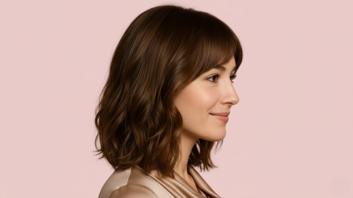 Cette coiffure est idéale pour la femme moderne à la recherche d’un look à la fois stylé et pratique. Elle se prête aisément à une transition du jour à la nuit, convenant aussi bien aux environnements professionnels qu’aux sorties sociales. Avec ses vagues texturées, ses couches encadrant le visage et sa frange rideau légère, cette coiffure offre une mise à jour fraîche et tendance qui allie à la fois impact visuel et accessibilité.