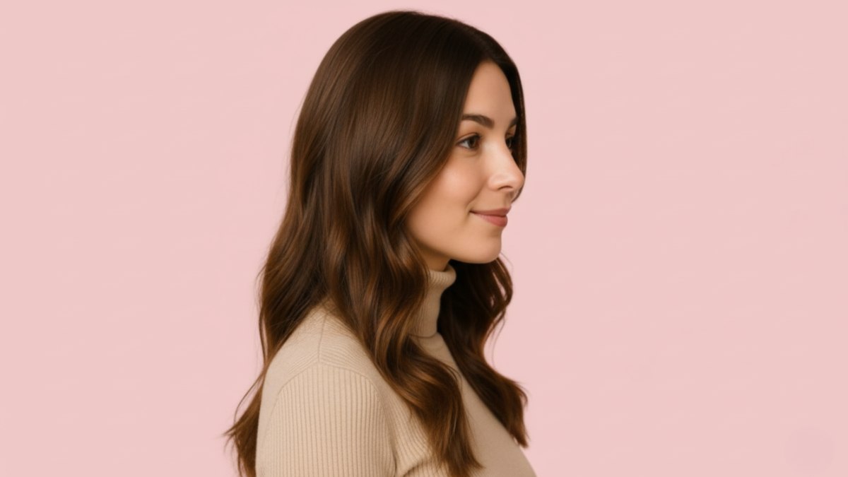 La couleur brun riche de cette coiffure est tout aussi captivante. La base est un brun profond et chaleureux, rehaussé par des reflets subtils qui s'entrelacent à travers les mi-longueurs et les pointes. Ces teintes plus claires, notamment autour du visage, créent un effet ensoleillé qui sublime la texture ondulée. Le dégradé de couleur, d'apparence naturelle - souvent obtenu par des techniques de balayage ou des mèches douces - ajoute de la dimension et de la profondeur, tout en restant discret, pour une apparence harmonieuse et accueillante.