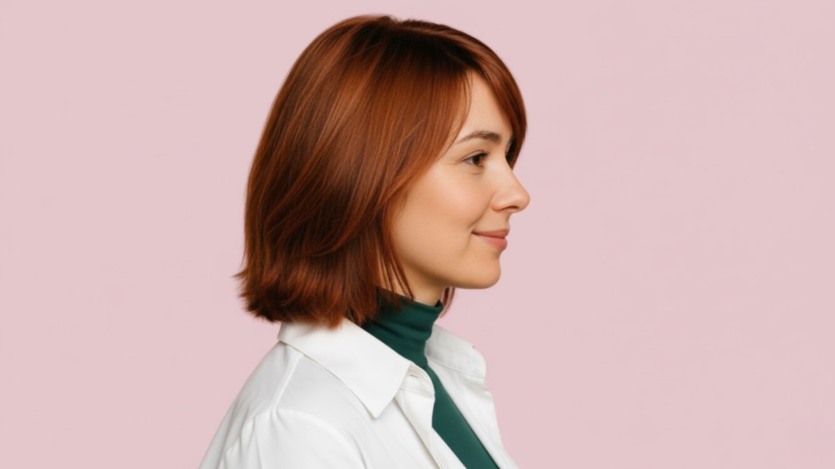 Ce carré, à la fois élégant et moderne, est une coiffure intemporelle revisitée avec une touche contemporaine, tombant gracieusement juste au-dessus des épaules. Idéale pour encadrer le visage, cette coupe se distingue par ses douces couches et sa riche couleur auburn, apportant chaleur et profondeur. Que vous soyez au bureau ou en sortie, ce look à la fois chic et polyvalent s’adapte à toutes les occasions.