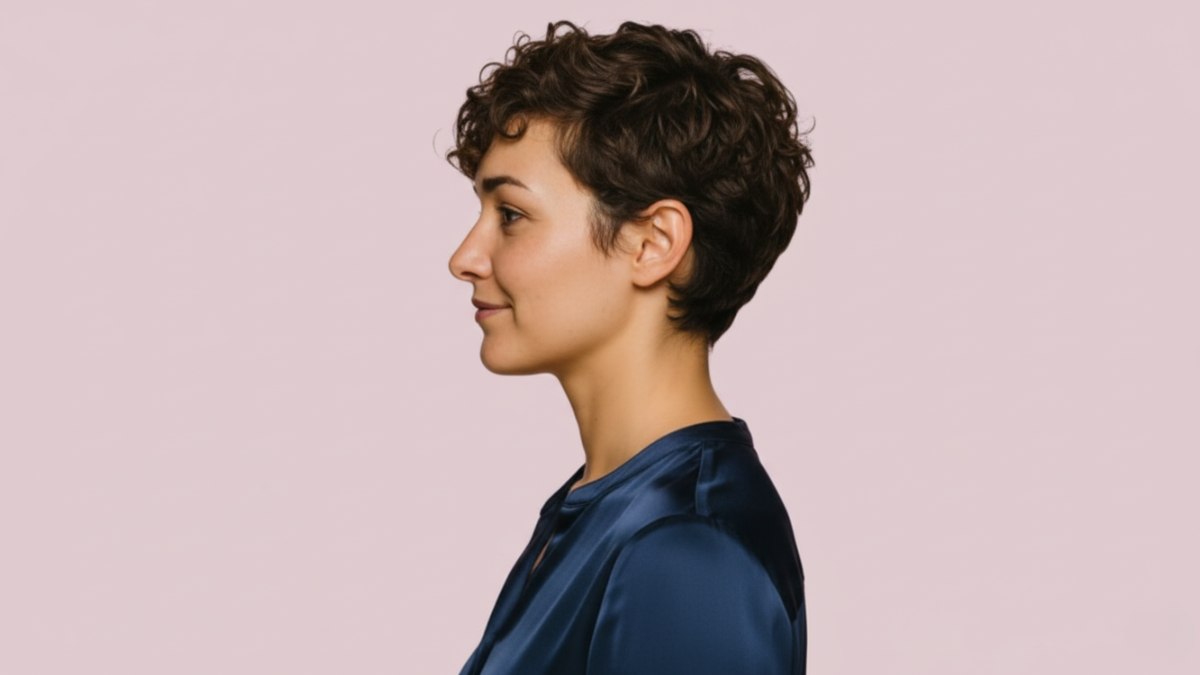 Cette coiffure ne concerne pas seulement la coupe — elle célèbre les boucles naturelles. Chaque boucle est embrassée et mise en valeur dans toute sa splendeur, faisant de ce style un témoignage de confiance et d'expression de soi. C'est une variante moderne de la coupe pixie classique, élevée par le volume et la texture. Les boucles plus longues sur le dessus ajoutent de la hauteur et créent cette belle forme arrondie à la couronne, donnant un coup de pouce supplémentaire à la silhouette générale.
