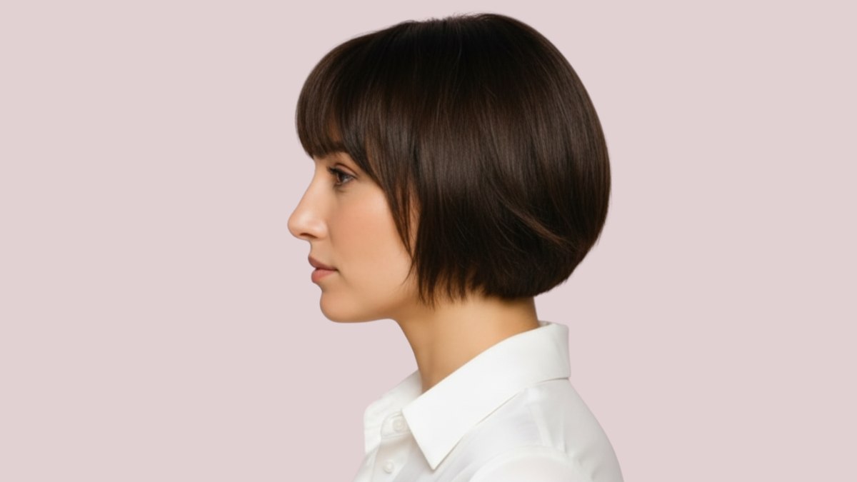 Cette coiffure offre un mélange parfait de classique et de moderne. À première vue, ce qui capte vraiment l'attention, c'est la frange. Mais ce n'est pas n'importe quelle frange : elle est épaisse et pleine, balayée sur tout le front, s'arrêtant au niveau des sourcils. On dirait qu'elle a été conçue pour mettre en valeur les yeux. La ligne des mèches apporte structure et équilibre au visage, tandis que le reste de la coupe joue avec le mouvement et la texture.