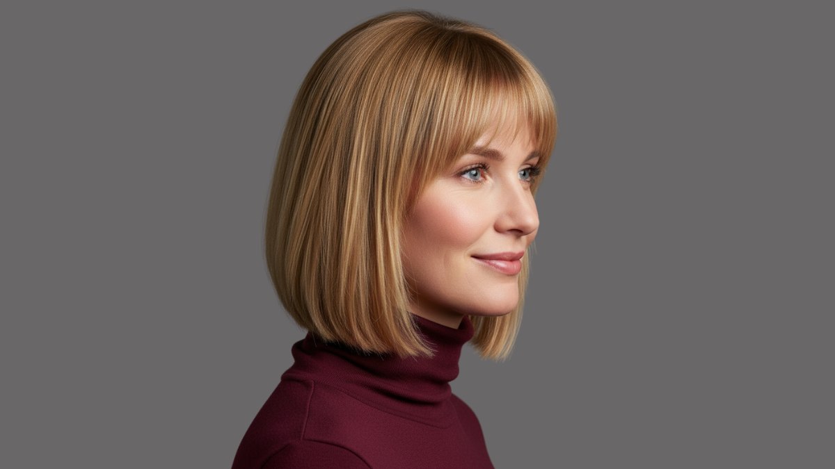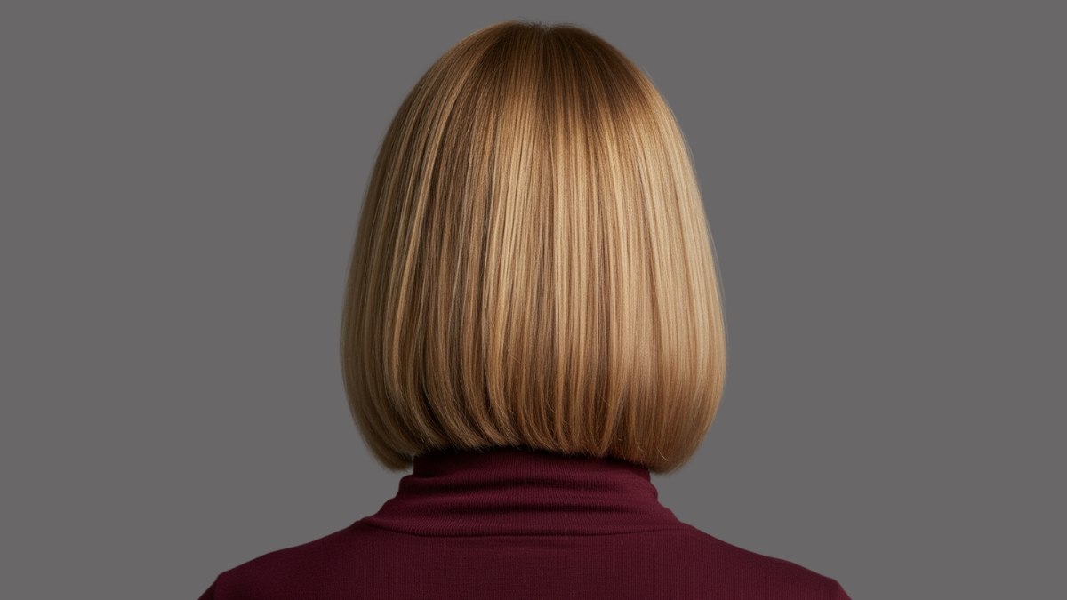 Voici l’essence même de l’élégance classique : un carré net à hauteur de nuque, exécuté avec une précision parfaite et associé à une frange droite et pleine. La coupe repose sur des lignes horizontales pures, créant une silhouette géométrique.